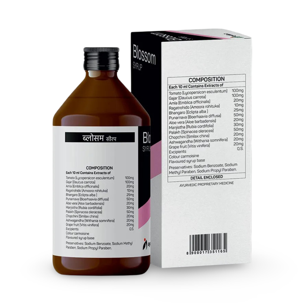 AYUKALP UAP PHARMA PVT LTD Blossom Syrup is a herbal tonic for women that balances hormones, improves reproductive health, and supports overall well-being.