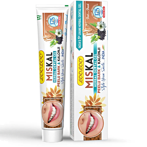Khojati Loo-Loo Miskal Gel is a traditional Ayurvedic oral care formulation designed to support mouth cleanliness and long-lasting freshness. Rooted in classical Ayurvedic practices, this gel plays an important role in maintaining daily oral hygiene. Miskal and other supportive ingredients form the foundation of this formulation. Ayurvedic tradition values these ingredients for helping maintain oral balance, cleanliness, and comfort. Regular use supports a fresh and clean feeling in the mouth throughout the day.