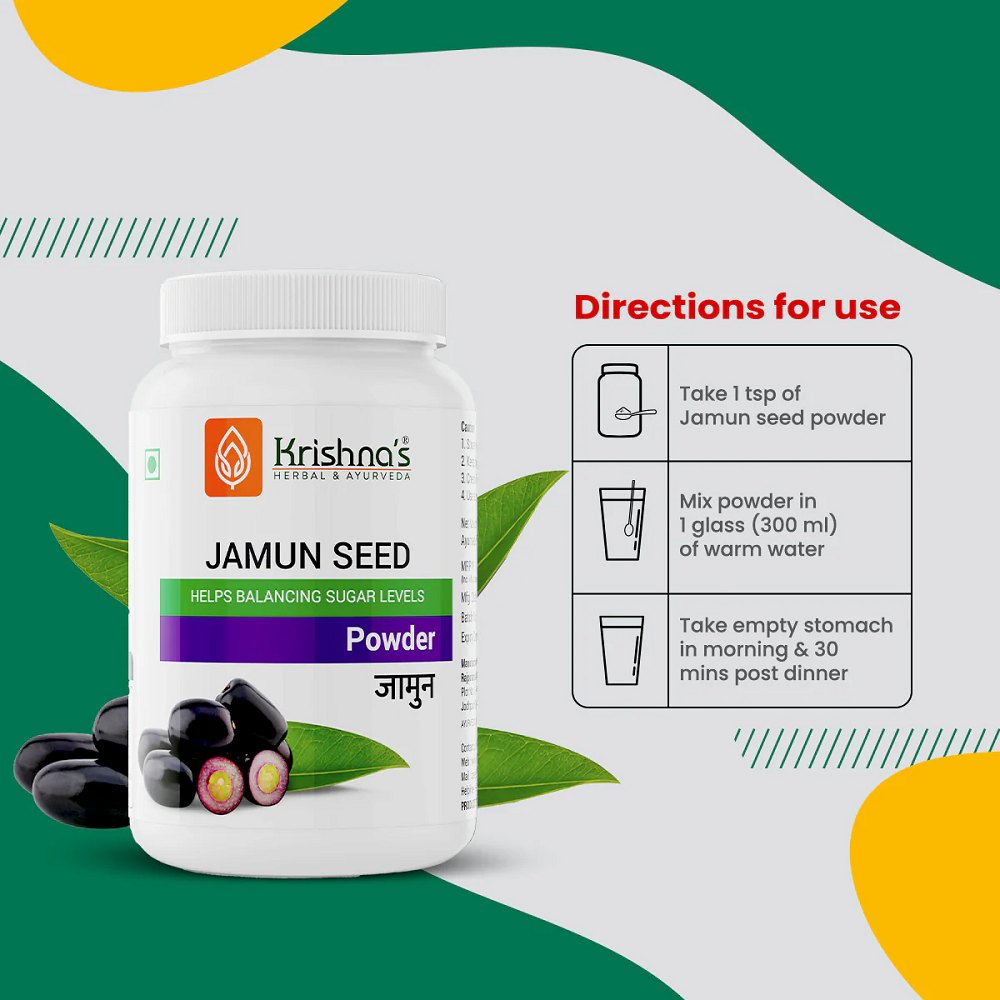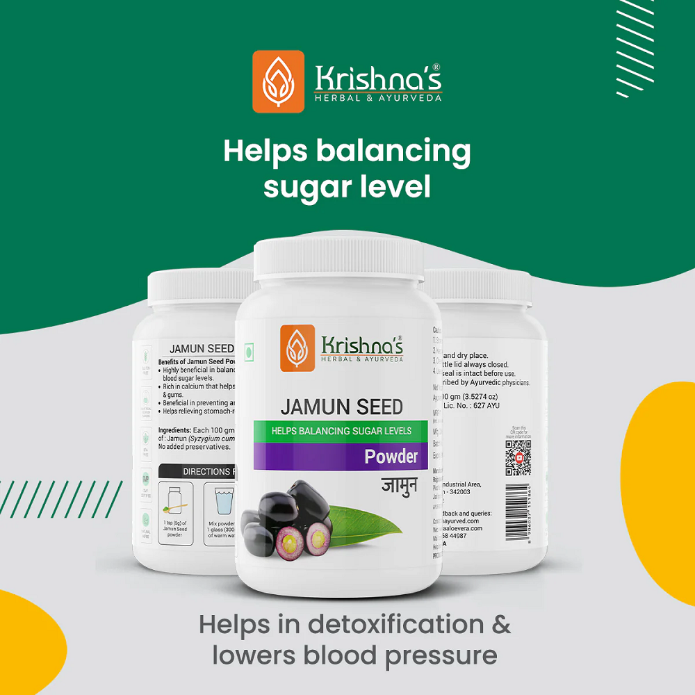 Krishna’s Jamun Seed Powder helps the body manage metabolic imbalance related to blood sugar levels by actively supporting digestion and metabolic function. It works to regulate blood sugar, support efficient carbohydrate conversion into energy, and maintain metabolic stability. By enhancing glucose utilization and energy balance, it contributes to better overall vitality. The formulation works at a foundational level, focusing on long-term metabolic wellness rather than temporary effects. With regular and guided use, it may help improve energy balance, support metabolic stability, and maintain digestive comfort.