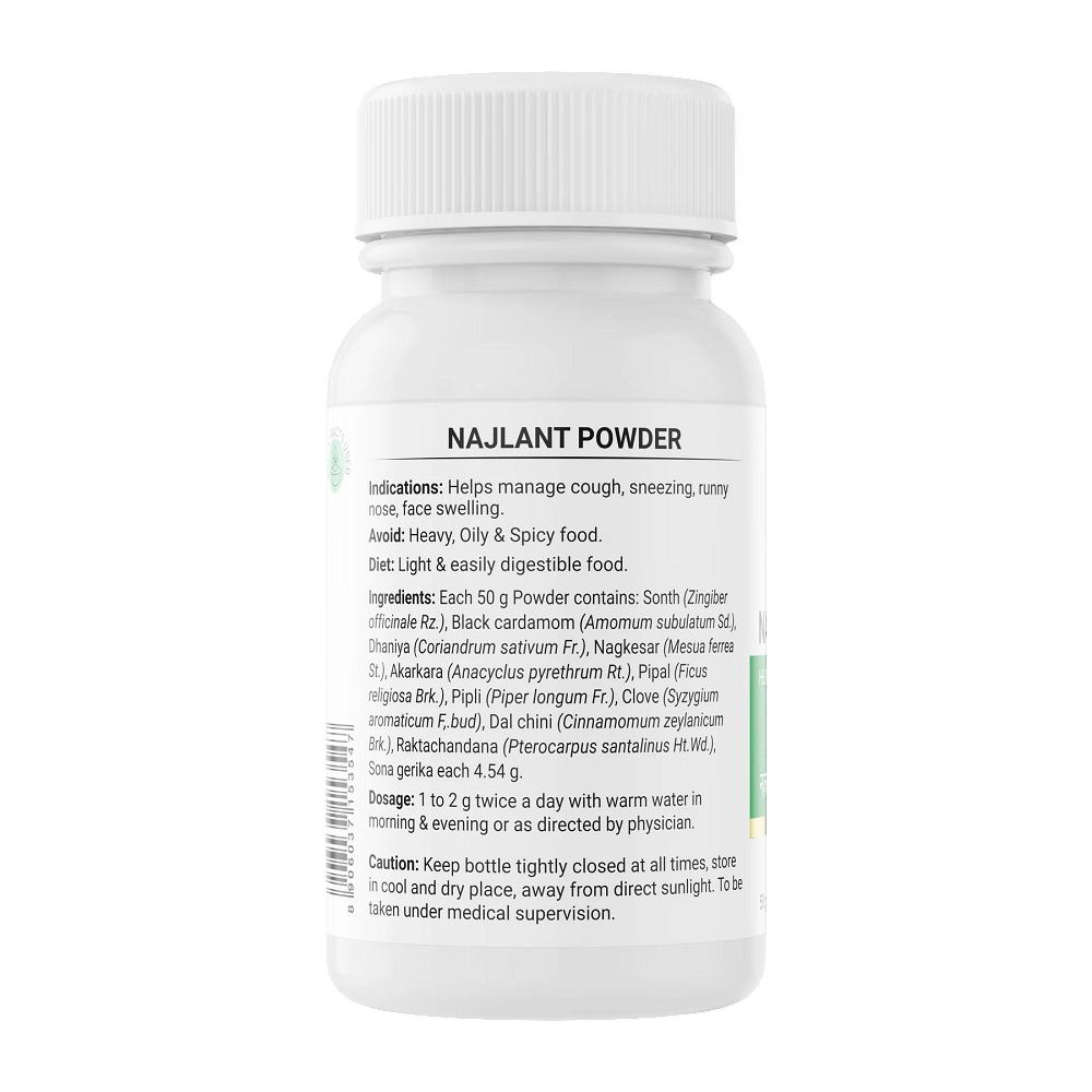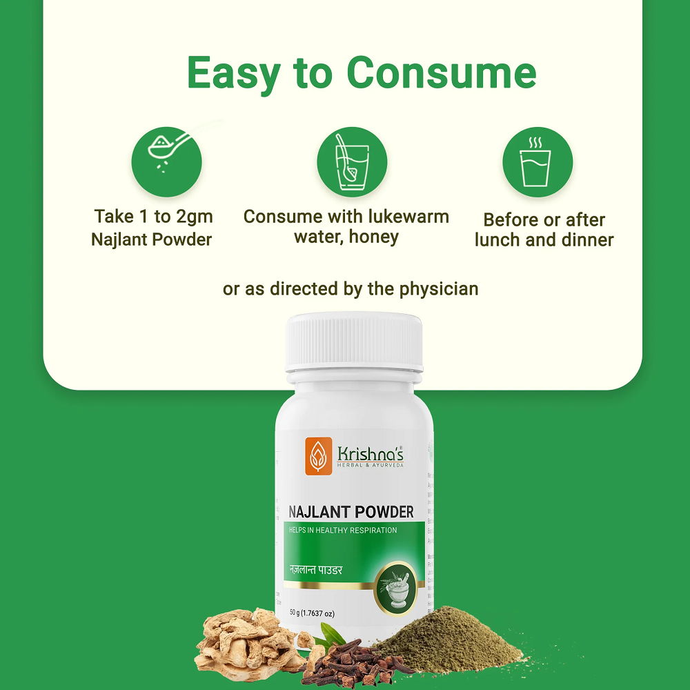 Krishna’s Herbal And Ayurveda Najlant Powder is an Ayurvedic nasal cleanser formulated to provide relief from sinus congestion, allergic rhinitis, and respiratory blockages. It helps clear the nasal passages, improves breathing, and supports overall respiratory wellness through natural decongestant herbs.