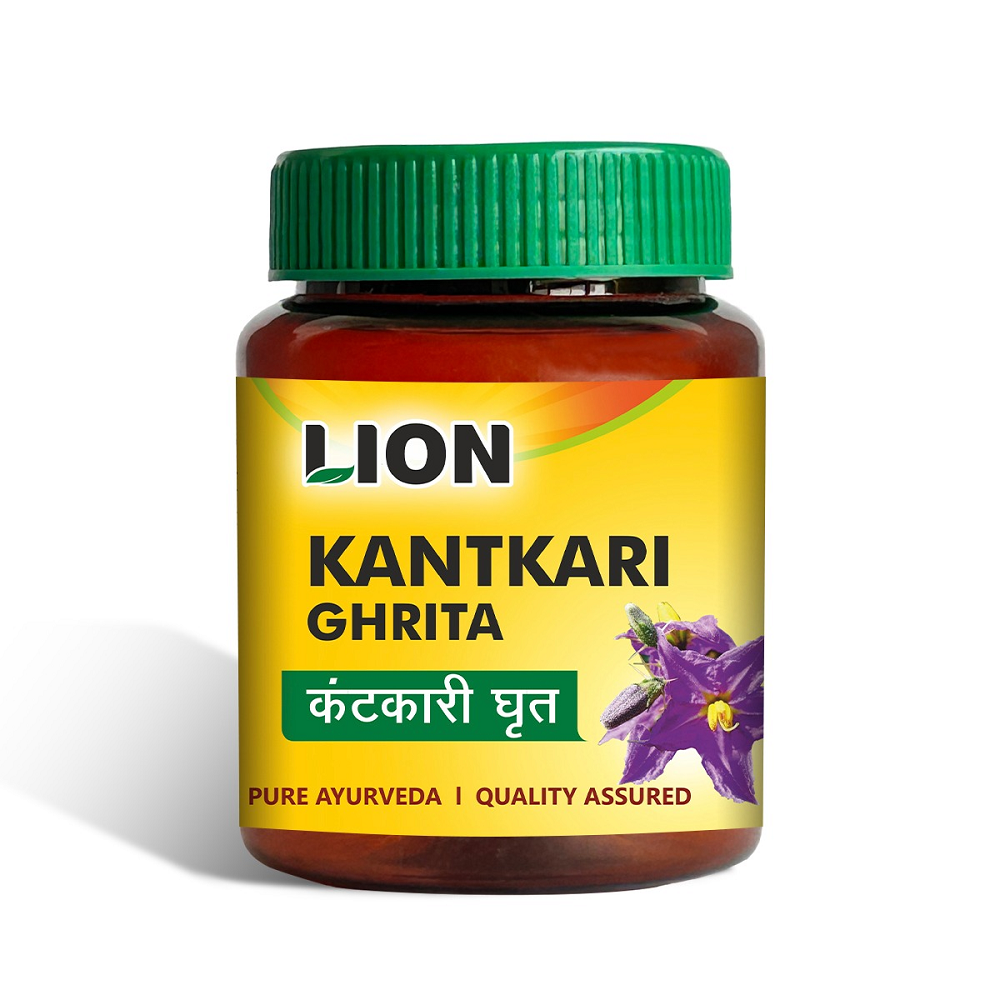 Lion Kantkari Ghrita is a traditional Ayurvedic formulation enriched with Kantkari and other herbal ingredients processed in pure ghee. It is known for its effectiveness in supporting respiratory health, easing breathing difficulties, and providing relief in cough, asthma, and throat irritation. Its nourishing base helps deliver the herbal benefits deep into tissues, promoting lung strength and overall respiratory wellness.