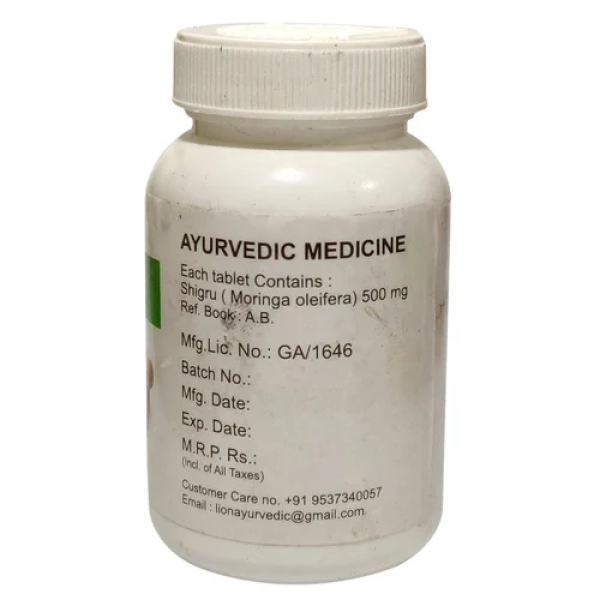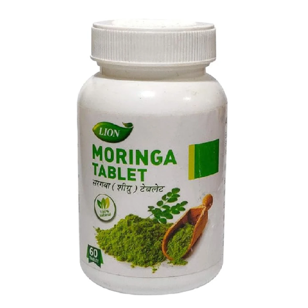Lion Moringa Tablet is an Ayurvedic herbal formulation prepared from Moringa oleifera leaves, known for their rich nutrient profile and antioxidant properties. It helps boost immunity, improve energy levels, and support overall wellness. This tablet also aids in maintaining healthy blood sugar levels, enhancing digestion, and promoting skin and hair health. Regular use contributes to vitality, stamina, and general body balance.
