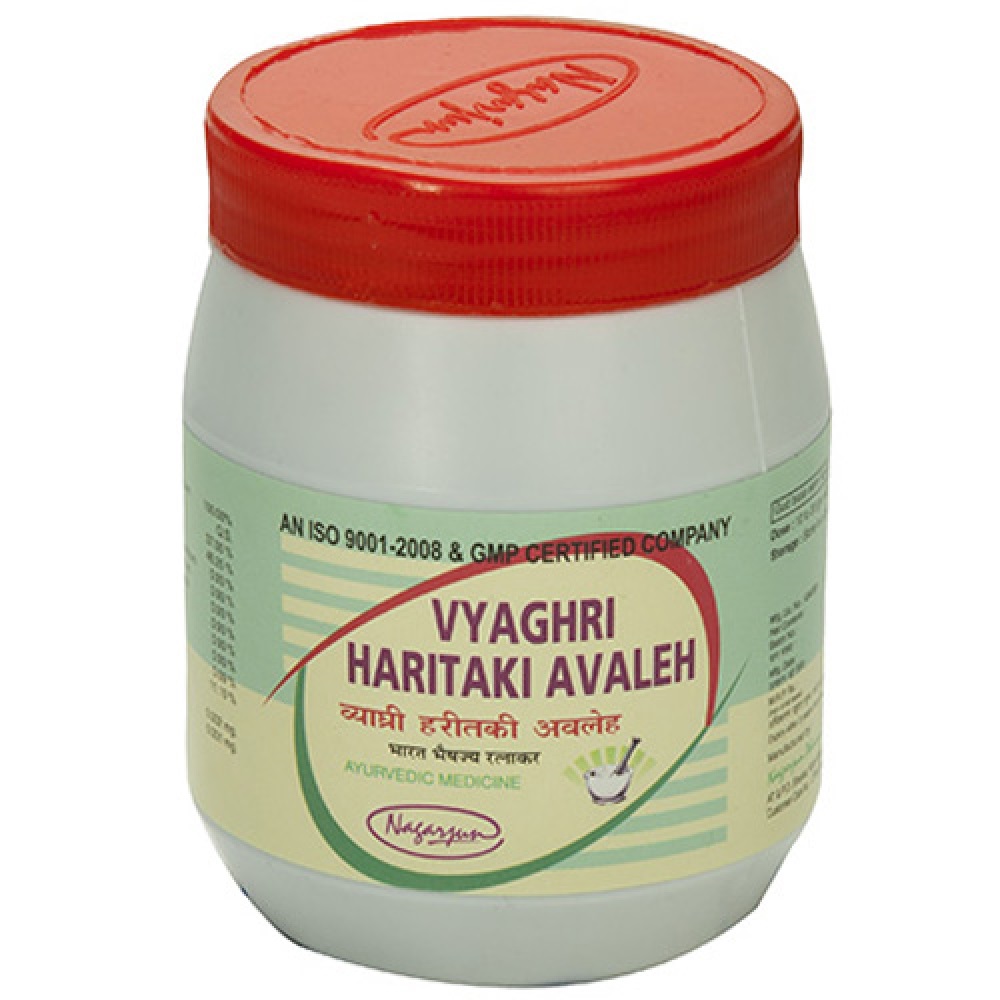 Nagarjun Pharmaceuticals Vyaghri Haritaki Avaleh is a traditional Ayurvedic formulation that combines the benefits of Vyaghri (Solanum surattense) and Haritaki (Terminalia chebula) to support respiratory and digestive health. It is highly effective in managing cough, cold, and asthma by reducing mucus buildup and soothing the throat. Additionally, it aids digestion, prevents bloating, and improves gut health. Regular consumption of Vyaghri Haritaki Avaleh enhances respiratory function and promotes overall wellness.