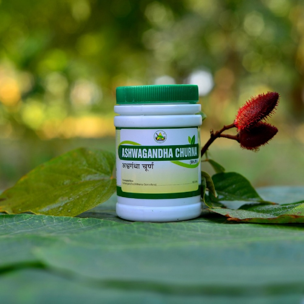 Ashwagandha Churna is a powerful adaptogenic herbal powder made from the root of Withania somnifera, traditionally known as Indian Ginseng. It revitalizes the body, strengthens the nervous system, improves energy levels, and helps the body cope with physical and mental stress. Regular use promotes restful sleep, hormonal balance, and improved sexual health. This churna is widely used in fatigue, weakness, anxiety, and age-related debility, making it a true Rasayana for long-term vitality.