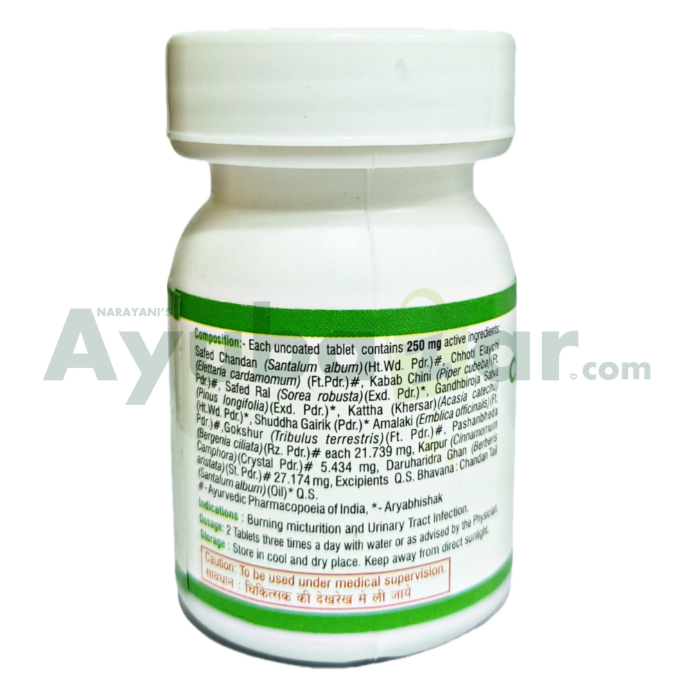 This clarifying formulation works by supporting the body’s ability to manage excess acid and heat. For instance, it improves the cooling response of the urinary tract membranes. Moreover, the herbal nutrients actively stimulate the elimination of accumulated toxins through the urine. This action helps reduce common discomforts like persistent burning, urgency, and localized heat. Similarly, Chandanadi Vati assists in the proper regulation of the body’s natural defense mechanisms. It prevents the stagnation of impurities that leads to recurring urinary issues. Additionally, the tablets support better functional stability during hot weather conditions. They also ensure a calm and steady physical state. As a result, you will experience improved systemic comfort.