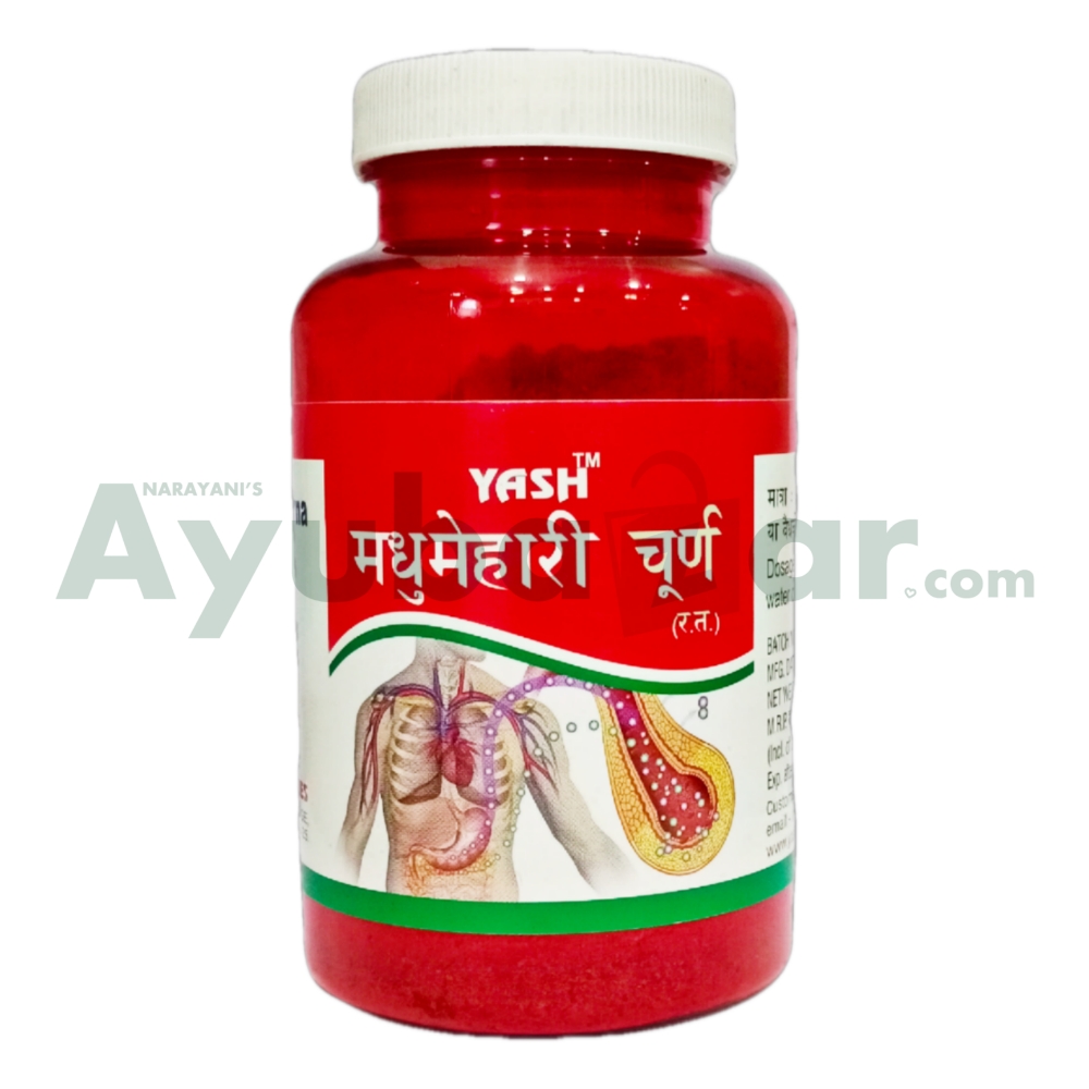 Yash Remedies Madhumehari Churna is an effective Ayurvedic formulation specially designed to manage blood sugar levels naturally. It combines powerful herbs traditionally known for supporting glucose metabolism and pancreas function. The churna works by enhancing insulin sensitivity and reducing sugar cravings. It helps in detoxifying the system and managing overall health in diabetic individuals. Suitable for long-term use under supervision, this blend aids in stabilizing energy levels and promoting wellness. It is a holistic support for diabetic care.
