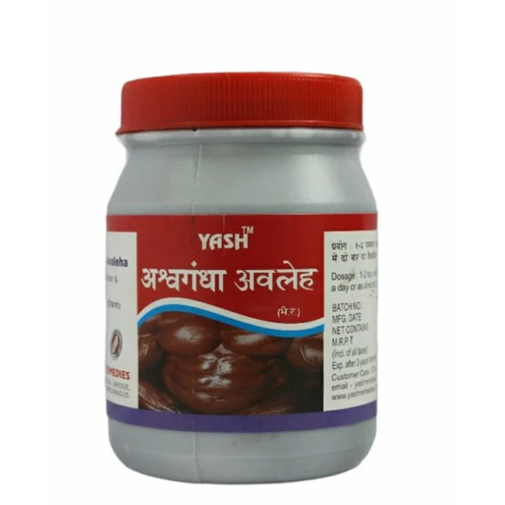 Yash Remedies Ashwagandha Avaleh is a traditional Ayurvedic formulation known for its rejuvenating and strength-enhancing properties. It helps in reducing stress, improving stamina, and promoting overall vitality and wellness. Enriched with potent Ashwagandha and other Ayurvedic herbs, this avaleh supports mental calmness, boosts energy, and enhances physical endurance. Made from 100% pure and authentic ingredients, Yash Remedies ensures each dose delivers traditional Ayurvedic potency, purity, and effectiveness.