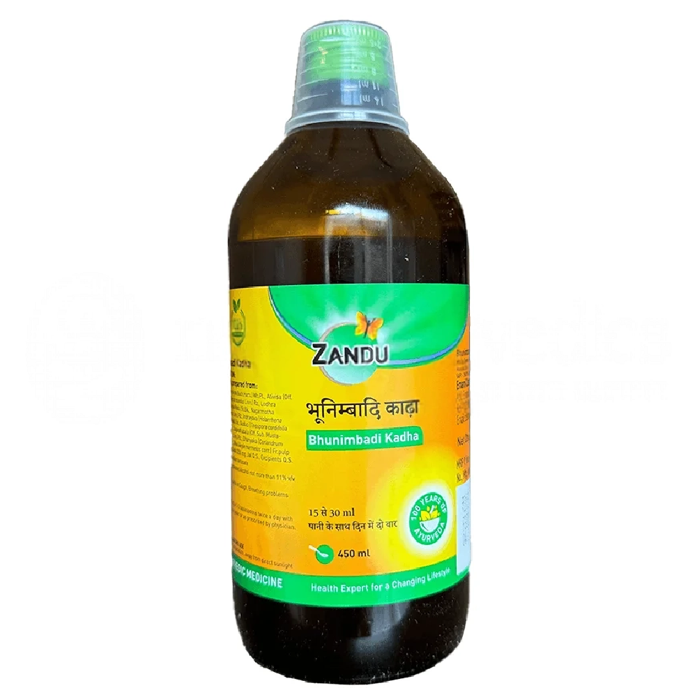 Prepared following classical Ayurvedic principles, Zandu Bhunimbad Kadha is manufactured with attention to quality, purity, and consistency. For best results, it should be used according to the guidance of an Ayurvedic practitioner, usually taken before or after meals. Store in a cool, dry place away from direct sunlight, and always keep the bottle tightly closed to protect its medicinal potency.